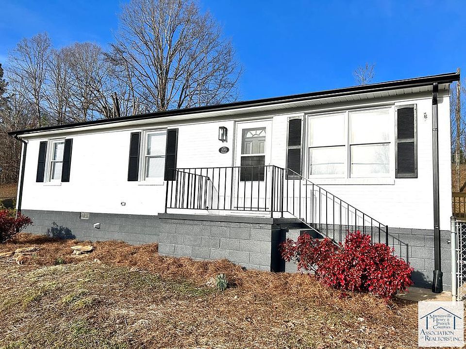 Welcome to 223 Eisenhower Rd, a great single- level living home located in a cul-de-sac thats move-in ready with 3Bd (with ample closet space) 1ba, kitchen/dining, living room, washroom(in closet in bathroom), along with coat and linen closets. The location of this home has convienient access to 220/ bypass for commuting to Danville, Martinsville, Eden, and Greensboro. Home has outbuilding, detached single metal carport, paved drive, with nice size yard fully fenced in that will be great for childern and pets to play. Fresh interior and exterior paint throughout home, new flooring(carpet,vinyl, laminate) along with new light fixtures and fans including exterior lighting.The bathroom has been newly renovated with double sinks tub/shower and beautiful flooring. Kitchen has been updated with new sinks and faucet, backspash, hardware , an island, new range/with hood and all new lighting and flooring. Seller has put a new roof,new HVAC with digital thermostat, updated plumbing throughout, new exterior doors, new railings on both porches, new hot water heater, and new gutters. Seller has provided copy of warranty for roof and HVAC that will be under documents tab. Washer and dryer were left by previous owner and its unknown if they are in working condtion.
