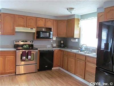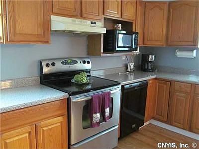 HOME IS WAY BIGGER THAN IT LOOKS! SQUARE FOOTAGE DOES NOT INCLUDE FULL PARTIALLY FINISHED BASEMENT WITH FULL BATH. Many updates include,windows,roof, central air,hot water tank,furnace, sliding glass doors, new paint, carpet,siding, garage door,interior doors, ceiling fans, and more! Gleaming hardwoods.Appliances new in 2010.Very large kitchen with new floor and counter tops in 2013.Lower level is partially finished with full bath,laundry room, potential 4th bedroom, and tons of storage.Great yard, partially fenced with shed. TAXES SHOWN WITHOUT $645 STAR EXEMPTION. Quiet dead end street.