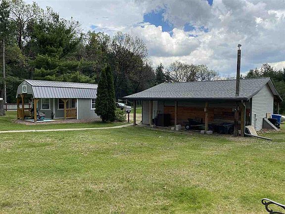 Country Charm awaits! This home was completely remodeled in 2018: siding, roof on home and garages, new appliances, upgraded plumbing and electrical, new flooring throughout, completely upgraded bath and more! Wood stove in Three Season porch makes it possible to use very little LP during our harsh winters. 2+ Car insulated and heated garage, additional one car garage, finished play house and tons of covered storage space make this the perfect hobby property. Don't just live somewhere, love somewhere!