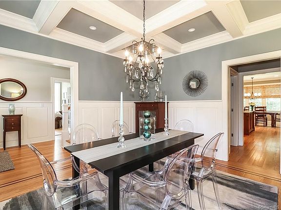 Nantucket comes to Trumbull in this rare gem located in ultra desirable Jane Ryan area. This custom home was built in 2007 and offers just over 3,200 square feet of living space plus an additional 570+ square feet of finished space in the lower level. Designed with top of the line finishes and high end details. Main level features an open concept living space. High end kitchen features include, professional grade appliances, granite counter tops, tiled back splash, center island and large breakfast nook. Kitchen transitions to butlers pantry which leads to the stunning dining room adorned with custom paneling, coffered ceilings and a beautiful chandelier. The family room features a fireplace with granite surround, built in display shelves and French doors leading to the backyard. Main level office perfect for someone working from home or distance learners. Interior features hardwood floors recently refinished, stunning carpentry, recessed lighting, custom closets, surround sound and outdoor speakers. Convenient mudroom and laundry area off garage. The second floor offers 5 bedrooms and 3 full baths including 2 master suites with walk in closets and full baths. The lower level is finished and could be used as playroom, exercise area or an additional family room. Don't miss the unfinished walk up third floor which provides tons of storage space and can be easily finished if desired. Exterior features front porch with new mahogany front steps, and brand custom built shed.