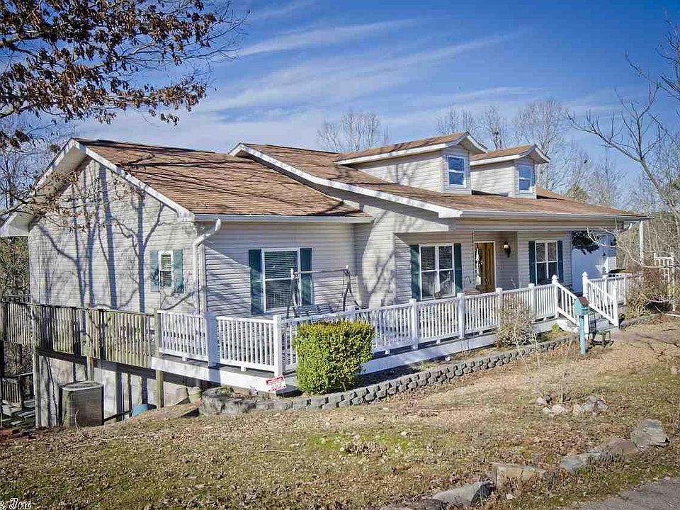 Beautiful country style home with wrap around porch and wooded/mountain views. This 3 bedroom 3 bath home in Fountain Lake school district is situated on approx. 3 acres. This home features stained concrete flooring and counter tops, gas log fireplace, vaulted ceiling, master suite with jetted tub and separate shower, double vanity, his and her closets, 2 car garage with addition workshop area, and fiberglass deck. Large game room, bedroom and full bath downstairs.