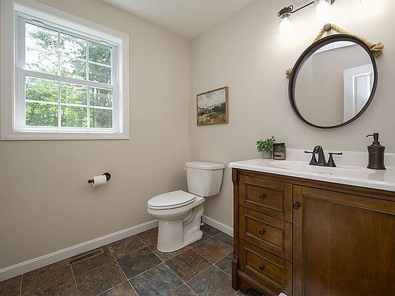 Welcome to your home sweet home nestled on a private 7.75 acres in desirable Sandown NH! This farmhouse chic Cape style home is a must see. It boasts all bedrooms upstairs complete with a walkin closet and private full bath in the primary suite. Plus 2 additional bedrooms and an additional full bath. Downstairs is perfect for entertaining gorgeous oak floors throughout, spacious eat-in kitchen, oversized island, formal dining room, cozy living room with fireplace and bonus room off the side perfect for that extra space you always wanted. First floor laundry and 1/2 bath. Full walkout basement great for storage and storing all your "toys" for the atv trails. Enjoy all the wildlife nature has to offer on the deck overlooking the lush 7+ acres. Love farm fresh eggs? You're in luck... The coop stays!
