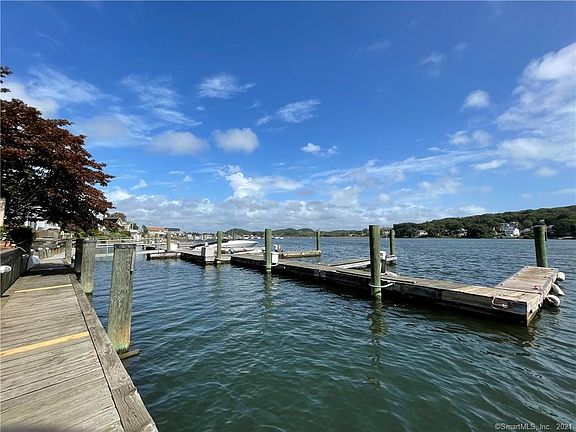 Enjoy sparkling Quinnipiac River views from this beautiful end unit townhouse at Oyster Cove. Located in historic Fair Haven this beautifully remodeled sunny unit has updated kitchen and baths. Hardwood floors throughout with 2 story windows on the south facing wall. Open floor plan with gas fireplace surrounded by builtins. Doors to river facing balconies off the main level and the upper family room. Direct access to your home from private garage below. This unit includes a boat slip on the river with water and electricity. Easy access to large floored attic for great storage. Short walk to riverfront park and bus.