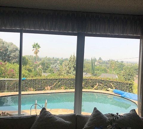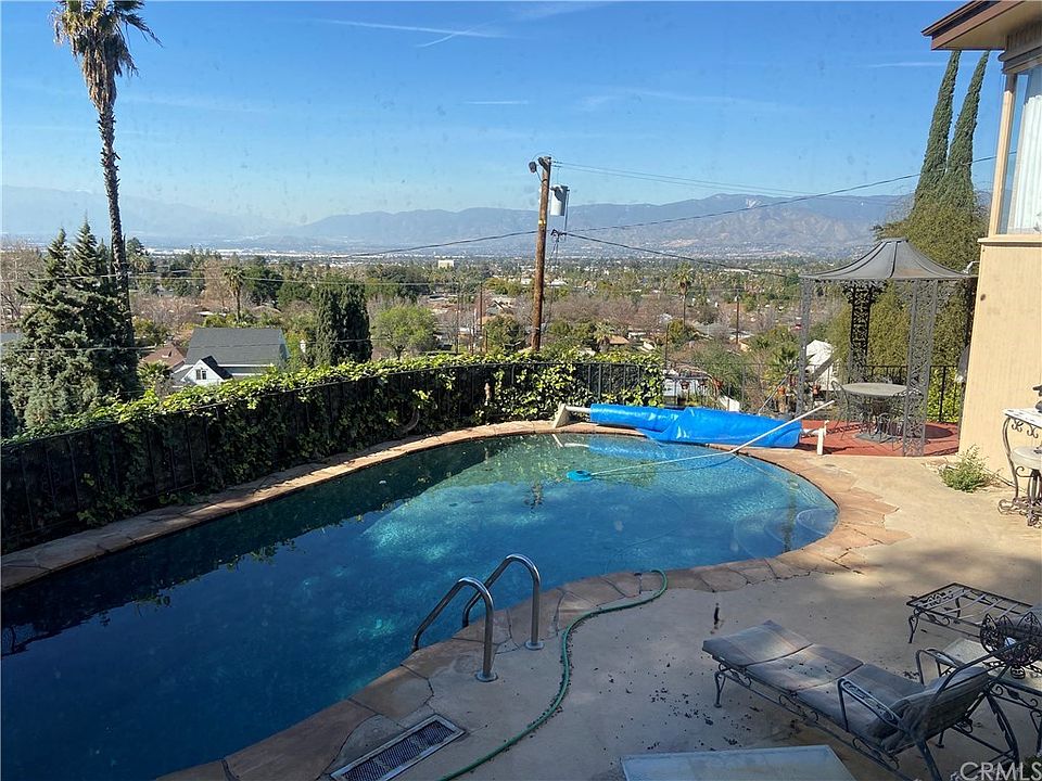 Fabulous Opportunity! This is an amazing opportunity to live on the much coveted view side of the street. Expansive views of the mountains and city lights. Nestled in between beautiful mansions, this mid-century-modern home was built by a famous architect with super innovative designs. Some of the design points are: intriguing with wide curving ramps to each floor, a stone wall built with huge fireplace and a waterfall in the living room (who said fire and water don't mix!) Most rooms have unobstructed views including the large living room, dining room, kitchen, and master. Master suite has a huge stone fireplace electric blinds, walk-in closet and large master bathroom. Lots of storage. The property was planted with many fruit trees in the past and has a pool. A true diamond in the rough. Huge lot (over 12000sqft). Custom built pool home with expansive views of the mountains.