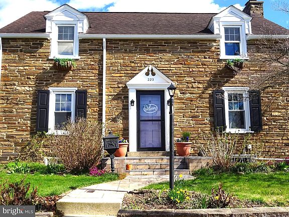 Nestled within the highly sought after West Ward of Lansdale, this enchanting stone colonial radiates charm and elegance and amidst a perrenial English Garden that is quite amazing! The extensive list of plantings can be provided. The fenced in level backyard offers privacy and a serene retreat and is complemented by a 2-car detached garage with opener , workbench and storage area. Enjoy the splendid curb appeal with a new stamped conctrete walk way and slate steps leading to the front door setting the stage for a warm welcome! Step into the tiled foyer, complete with a handy coat closet and feel the allure of the rest of the house with hardwood floors, deep window sills, original wooden doors and brass handles. The expansive kitchen boasts 2 beautiful built-in cupboards, ample freshly painted cabinets and an island with butcher block top and bead board trim. There are all stainless steel applinces including a brand new microwave and double stainless sinks. The elegant formal livingroom features a stone wood-burning fireplace exuding warmth and sophistication. French doors lead to the spacious familyroom with tiled floor and walls of windows inviting an abundance of natural light. Step into the wonderful large covered back porch, spanning the entire width of the house offering a tranquil space to overlook the magical displayof flowers, berry garden and herbs. A long list of plantings is readily available. A handy powderroom completes the first level. Ascend to the second floor and you will find a large room with endless possibilities as on office, playroom or additional bedroom. You will be delighted at the size of the primary bedroom with double closets. That and 2 addtional bedrooms are served by a sparkling classic black and white ceramic tiled bathroom with a shower over tub.There is a large hall linen closet plus a separate walkin cedar closet. Steps the lead to the floored attic providing even more storage. Ceiling fans throughout this home ensure comfort and airflow while recessed lighting adds a touch of modernity. The basement has a newly sealed and insulated bilco door leading to the backyard. Recent improvements include Central air and a mini split in the famiyroom, a new sewer line and hot water holding tank. Most of the house has been freshly painted enhancing the inviting ambiance and showcasing the beautiful decor and condition of this character-filled home. This is an outstanding location where you can walk to the train,. You can walk to the park and enjoy the Whites Road Pool . Walk to restaurants , shopping and all the town festivals and events! This gem is not to be missed!