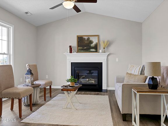 Step inside, and you'll be greeted by the spacious living room with vaulted ceilings and a cozy fireplace, providing the perfect spot to unwind after a long day. The heart of the home, the kitchen, has been thoughtfully updated with new countertops, gleaming stainless steel appliances, and beautifully refinished cabinets, making meal preparation a breeze. The bathrooms have been meticulously designed with sparkling new white countertops, refinished cabinets, and modern plumbing fixtures, creating a spa-like ambiance.