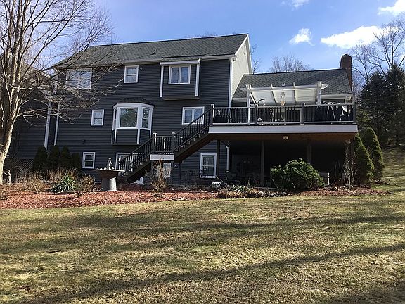 Location is ideal. 2 minutes from state trooper barracks and exit 14 interstate 84. A four bedroom home with 2 additional bonus rooms. On a 2.16 acre wooded lot with a great yard that backs up to undeveloped wetlands. Quiet cud de sac with plenty of privacy. Recently painted and new 5 inch gutters, 4 inch down spouts with the premium one guard gutter system. Professionally landscaped. Brick fireplace with Lennox propane insert. Car lovers garage. 13 ft ceilings insulated and drywalled. Complete slot wall storage system. 4 post drive on suv lift that was custom powder coated black. 3 car garage (4 cars with lift). Lift still provides 6 ft clearance to walk or park under. Large 10x20 shed that matches house. Granite counter tops in bathrooms, kitchen has corian counter with 1 piece integrated sink,36 inch jenn aire cook top in island and Maytag double oven and 5 door refrigerator. 2 drawer dishwasher included.