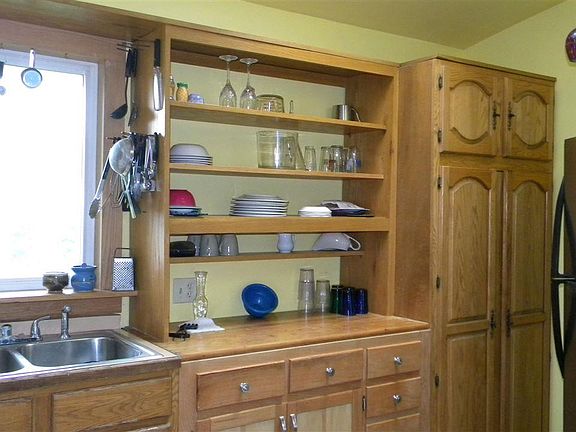 Unique in design and features! Take a look at the pictures on line. This home has lots of great features in the open kitchen with lots of cooking space, there is a small loft above the bedroom, skylights, fireplace and wonderful fish pond. Great for entertaining or just living!