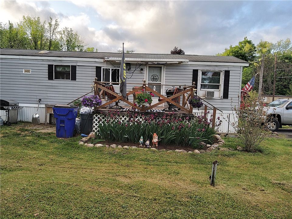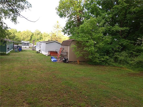New to the market, this single wide mobile home in Kenyon Landing has what you are looking for-Updated kitchen, new carpet in living room, updated bath, new water heater and upgraded furnace. That is on the inside - what you get on the outside is a new shed with electric and a lot that backs up to undeveloped space. Beautiful landscaping around the porch. Must complete an application and get pre-approved by the park. NYSEG gas and electric service, water is metered and billed by park, taxes included in lot rent, property tax exemption (STAR) applicable. Trash pick-up, seasonal road maintenance and septic included in lot rent. Hot Tub, Washer/Dryer, Refrigerator chest freezer do not convey. Window in 2nd bedroom will be replaced and room will be painted before closing. Please do not let cats out. Showings Mon-Fri after 6:30 p.m. with 24 hours notice on Sat and Sun to remove pets. Seller can not locate title.