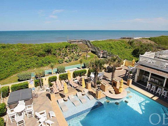 OCEANFRONT PERFECTION!!!!! If perfection could actually be obtained, this home would be just that......perfection! One of "the" most well maintained Oceanfront home I have seen on the Oceanfront of Pine Island in 17 years. "Ritz Palm" is an investors dream with 326k in advertised income for 2019 and looking to top that in 2020. Countless activities throughout the property which makes this property a family resort onto itself. Complete with a beautifully built high end custom concrete heated pool with LED fiber optic lighting and a relaxing swim up bar. Take it easy on the sundeck or under the covered outdoor entertainment area loaded with surround sound music, TV and full outdoor kitchen. For the family members that need a little time inside "Ritz Palm" is complete with its own sports bar and theater room. The home features state of the art electronic, full body massage shower, marble flooring, climate controlled fitness room, elevator and an eloquently constructed craftsmen staircase complete with custom iron balustrades. Panoramic views of not only the Atlantic Ocean but also the Currituck Sound and a meticulously kept professional landscaped yard with irrigation system that completes the overall experience of being in a serene paradise setting.
