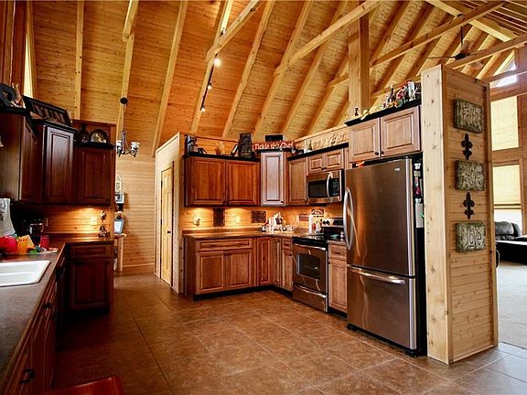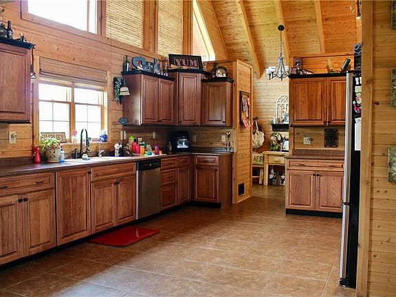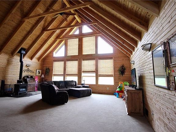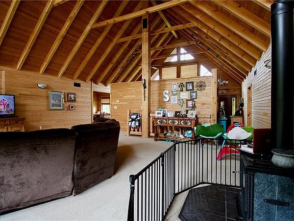 This stunning cedar Log Home sits on a picturesque 14+ acres of level land. From earthy ceramic tile floors to exposed beam vaulted ceiling, this home has a uniquely rustic feel. The 25x25 living space has floor to ceiling windows and a wood burning stove to keep you extra cozy during the cold months. The spacious kitchen features stainless steel appliances and plenty of cabinet space. All of the bedrooms are large with high ceilings, but the master also boasts and en suite bathroom with double sink. Downstairs is a full dry basement with limitless possibilities. The acreage is flat and mostly cleared, perfect for farming or pasture.