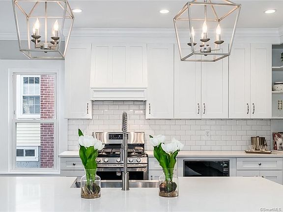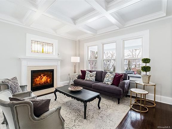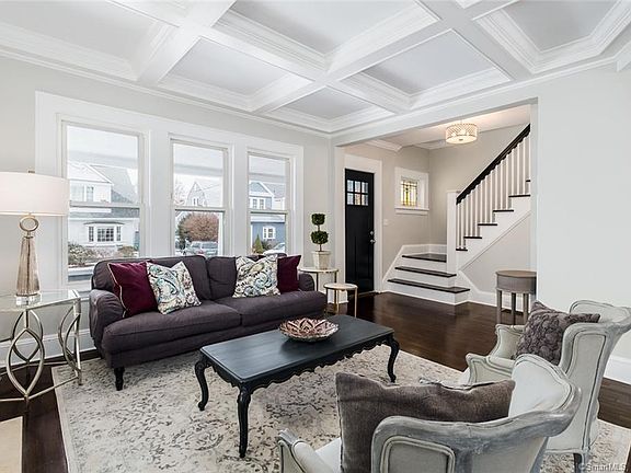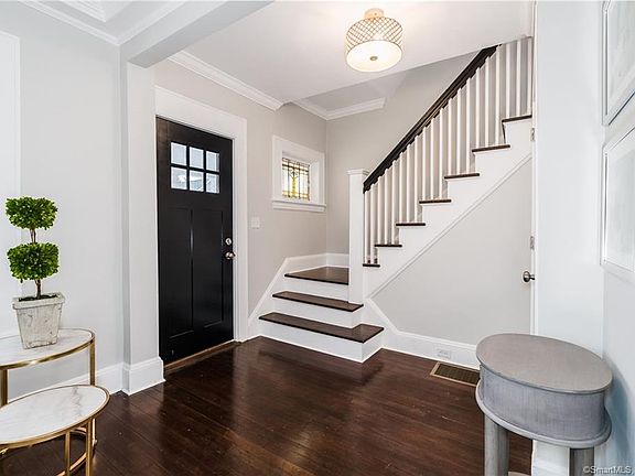 The belle of the ball! Find a striking cohesion of period detail and modern flair in this renovated vintage colonial. You'll fall in love before you even set foot inside, as this home is nestled on one of the most well cared-for and sought-after streets in Stratfield - a neighborhood quoted by the New York Times as boasting "More Apple Pie Charm for a Little Less Cash". Walk up to the rocking-chair front porch and through the front entry to newly opened floor plan bathed in light, with gleaming hardwood floors, original stained glass windows, and thick mouldings. The intimate living room offers deep coffered ceilings, gas fireplace, and opens to the large dining room and luxe kitchen. Whether you're a cook or just love to entertain, THIS is where you will want to spend all of your time! Quartz counters, white shaker cabinetry with handpicked pulls, Samsung appliance suite, huge contrasting island with storage and seating for 5. A mudroom, powder room, and laundry nook round out the first floor. Upstairs, find a creative layout with two large bedrooms and "Jack & Jill" bathroom, as well as a Master Suite with private marble bath and wide double closet. New shingle-style vinyl siding, roof, new or newer windows, all new hi-efficiency heating system, central air, and on-demand hot water. Full, usable basement with freshly painted walls, whitewashed ceiling and wall-to-wall carpeting. This family-owned design team had their last projects sell out almost instantly, don't miss out!