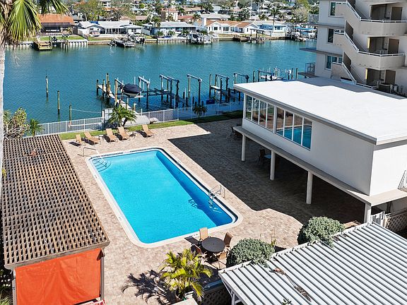 Luxurious fully furnished 2 bed 2 bath Clearwater Beach dream condo nestled on the 2nd level of Island Way Towers, a modern waterfront building right in the heart of Clearwater Beach. Enter the condo to a bright foyer with a coat closet and landing on the left side and a dazzling kitchen and dining room on the right side featuring glistening quartz countertops, solid wood cabinetry, quality stainless steel appliances and a sparkling tile backsplash. The living room opens to enormous sliding glass doors and a balcony beyond. Fantastic outdoor living thanks to an expansive pool deck lined with chaise loungers and multiple cabanas, a barbeque area and most importantly a large heated swimming pool and piping hot jetted spa, all with stunning waterfront views! Amazing Panoramic Intercoastal Water views from the community party great room situated just down the hall which includes a party kitchen, huge dining set and enormous living room with lots of seating and a large flat screen TV, perfect for entertaining large groups or just enjoy it yourself. Island Way Towers also offers a cozy front lobby and a nicely equipped community fitness room. Back to the condo details: The primary suite includes a plush bedchamber, full ensuite and of course a large walk-in closet. The 2nd bedroom has a built in closet and comes furnished with a hide-a-bed sofa for max flexibility. This beautifully appointed home comes furnished with the highest quality furniture and dcor, locally sourced and professionally curated. A storage cubby is assigned (#4) on the 2nd level. Assigned covered parking space #22 is included and plenty of extra parking for residents and guests. Convenient location steps away from fine dining and shopping, yet only a mile from the high energy sugar sand beaches and non-stop party hotel zone, perfect location for optimal Clearwater Beach living!
