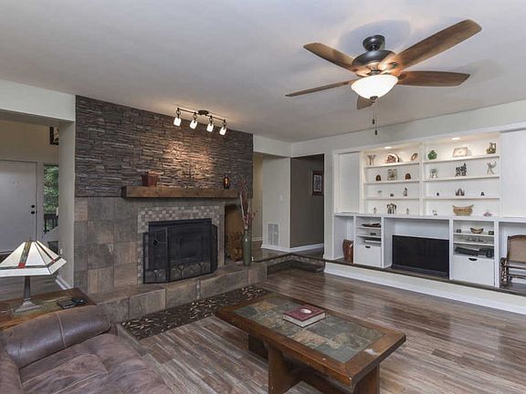 - RoomLivingRoomFeatures: Fireplace, Floors-Hardwood, Books, Ceilings-High (over 9 Ft), Ceiling Fan