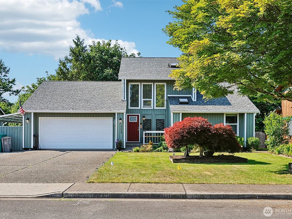 Immaculate home on a quiet cul-de-sac in Arlington’s desirable Kona Crest neighborhood! Backing to peaceful green space, this beautifully maintained property offers privacy and thoughtful upgrades throughout. The remodeled kitchen (2022) showcases quartz counters, herringbone tile backsplash, crisp white cabinetry, stainless steel appliances, and a center island with range hood—perfect for entertaining and everyday living. The spacious primary suite features a jetted tub in the bedroom and an updated en-suite bath with double vanity, lighted mirrors, and walk-in shower. Both bathrooms feature skylights, allowing in soft, natural light. Step outside to a large deck with covered BBQ area, oversized garage, an extended driveway. Move-in ready!
