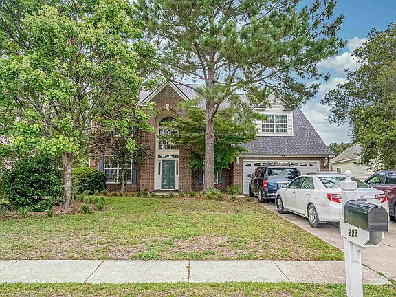 Located in the well-established neighborhood of Spring Lake, this stunning two-story brick and sided home is sure to catch your attention. Space is no issue in this 4 bed, 2.5 bath home with an attached two-car garage. This home is surrounded with mature trees, which offer privacy from neighbors. As you approach the arched front entry, you’ll notice the beautiful Japanese maple framing the porch. Upon entering through the arch adorned front door, you’ll encounter a spacious foyer, granite floor underfoot, and an open staircase leading up to the four bedrooms. In the main living spaces, you’ll find detailed crown and chair rail. A spacious open family room and eat-in kitchen spans the back of the home, with hardwood in the family room and tile flooring in the kitchen. The kitchen boasts plenty of cabinetry, a generous pantry, and a built-in office space. Natural light illuminates the breakfast nook and secondary living space that are open to the kitchen. The spacious master suite is on the second floor, and includes a vaulted ceiling with ceiling fan, dual walk-in closets, a whirlpool tub, glass-enclosed shower and dual sinks. Two additional bedrooms and full bath are located across the hall, as is the spacious bonus/bedroom. The extended patio and fenced yard back up to the serene lake. It’s easy living with only a short walk over to the beautiful community pool. The Spring Lake community is a short walk to Carolina Forest Elementary School, and only minutes to both Ten Oaks Middle and Carolina Forest High School. Located about fifteen minutes to beach access and within minutes of Tanger Outlets.
