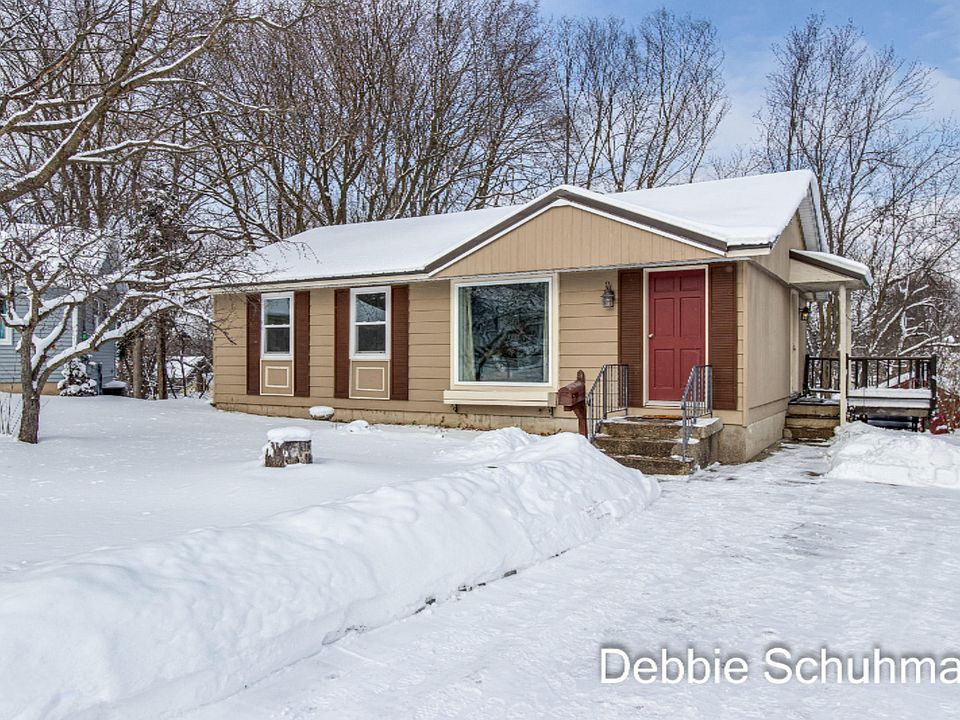 Immaculate move in ready 4 bedroom 2 bath walkout ranch in City of Rockford. Updates include new windows, flooring upstairs and downstairs, new metal roof and fresh paint throughout. Lots of natural light. Main floor features spacious living room, kitchen with new countertops, lots of cabinetry. Dining space has large window overlooking huge fenced in yard. 3 bedrooms and bath complete main floor. Lower level features a large family room, bedroom with walk in closet, office/zoom space, large bright laundry room with utility sink, plus a flex room with attached bath and slider to large rear deck. You will love the sliding barn style door! Large storage shed included. Immediate possession! Amazing location near downtown Rockford, schools, highways and dog park! Offers due 2/14/21 6 pm