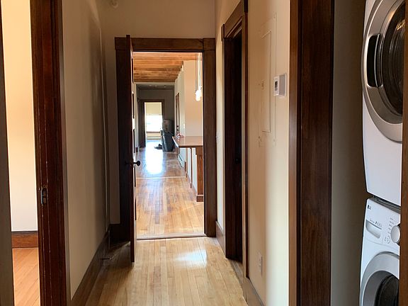 223 Lisbon Street Lewiston is a part of Lewiston's revival with a recently renovated 4 bed, 3 bath apartment located in a building rich with history. This unit is perfect for a family or people who want their own large bedrooms with en-suite bathrooms but don't mind sharing a large kitchen and living area. This unique 4th floor apartment is in the heart of Lewiston's downtown and is within walking distance to festivals, restaurants, parks, river, and arts venues. Close to CMMC, St. Marys, Bates College, and a quick drive to Portland and Augusta. Large windows flood the spaces with light and provide fresh air in this fourth-floor unit. Insulation, new windows, and a new heating system provide a quiet, efficient, and comfortable space. Each bedroom and living space have a ceiling fan. The kitchen includes high quality cabinets, stainless full-size appliances (including dishwasher), a range hood that vents to the outside, and ample storage, including a pantry. The bathrooms feature unique modern vanities, large showers with handheld sprayers, and a clawfoot tub. A stacked full-size washer and dryer is conveniently located near the kitchen. Rich wood flooring is found in the living room, bedrooms, kitchen, and hallways and gives warmth to the space. A large open concept living space with exposed brick and unique LED lighting give the spaces a great look and feel. Features repurposed historic building, apartment renovated in 2019 views of the Historic Bates Mill, Canal, Lisbon Street and downtown former home of WCOU radio station, a studio that recorded famous musicians, and Le Messager newspaper large open concept kitchen, living, dining area enormous kitchen with high quality cabinets, new full size stainless appliances including dishwasher, and ample storage, pantry cabinet + full pantry 4 bedrooms, with ceiling fans 3 bathrooms, modern vanities, large showers with handheld sprayer, 1 bathroom includes a usable clawfoot tub refinished wood flooring gives warmth to the bedrooms, kitchen, and living areas washer and dryer full size exposed brick walls unique features, built with quality materials and craftsmanship off street parking available in Centreville Garage, located block from door building has added level of safety with sprinkler system + fire alarm system No smoking property Can furnish unit for an additional cost Tenant must pass background and credit screening and have landlord or equivalent references. 1 year lease water / sewer included internet included tenant pays heat & electricity (and cable tv) no smoking property pets considered on a case by case basis, pet deposit required