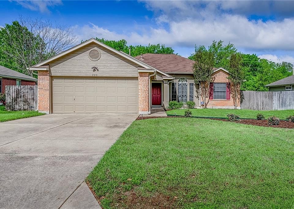 ALARM call agent for instructions! ONE OWNER AND PRIDE SHOWS!! Fresh paint inside. Outside paint 2 years ago. Granite/backsplash installed 3/20. Carpet replaced in beds. Recent stainless appliances. Custom patio last summer. Master bath has separate tub/shower, double vanities, and a walk in custom closet. Ceiling fans and ORB fixtures replaced. No neighbors behind. Water softener! Security system! Sprinkler system and an oversized lot. Great location next to Toll, HEB, shopping and restaurants.