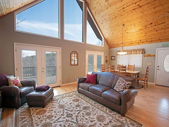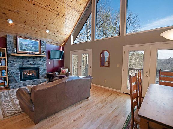 FULLY FURNISHED MOUNTAIN VEIW HOME WITH RIVER FRONTAGE...Located in a quiet mountain community this home features a great room with vaulted wood ceilings, large windows around the entire great room to let in the natural light and the beauty of the outdoors, stacked stone fireplace for those cool mountain evenings, open floor plan and hardwood floors are just a few of the features this home offers. Great room opens to a dining area an invites family gatherings and the kitchen is spacious with breakfast bar. Step out onto the spacious deck and enjoy the river and mountain views, a perfect place for entertaining family and friends. Stroll down to the river where you can sit and relax on the deck and fish, kayak or canoe right from the banks. COME ENJOY THE SIMPLE LIFE!!