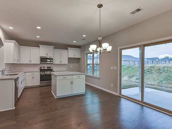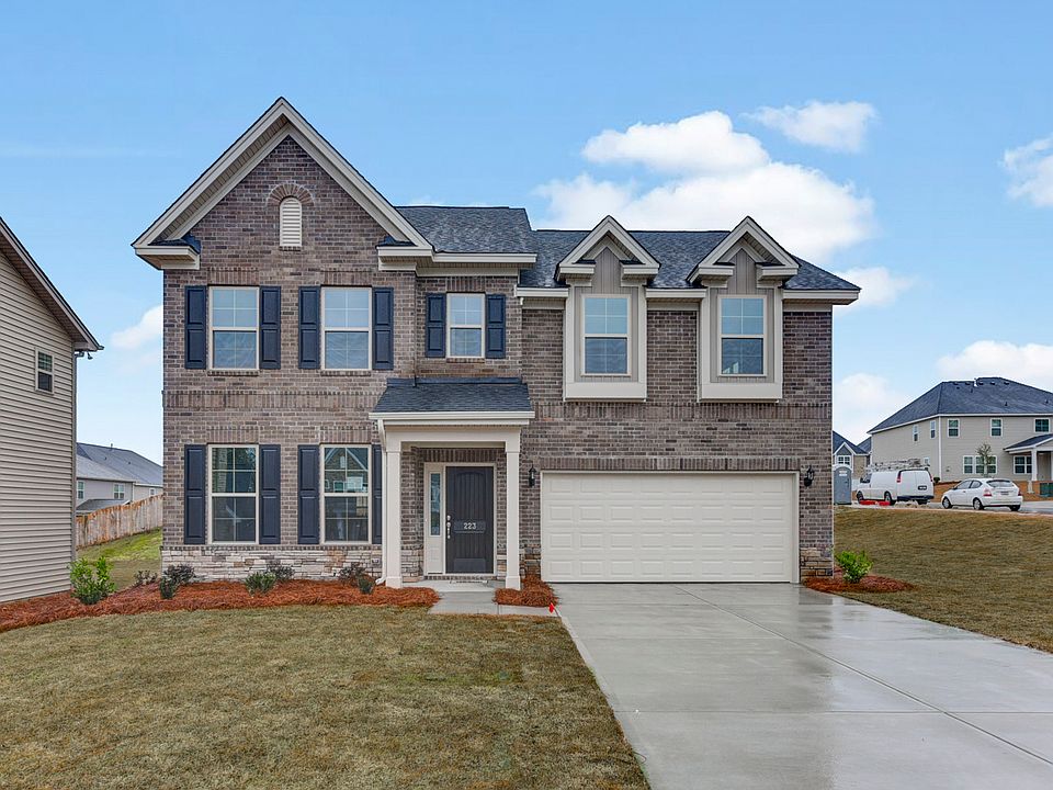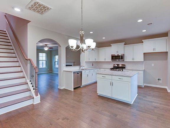 Come and visit our cozy Langford floor plan. This three bedroom plus with a loft and two-and-one-half baths will have everything you need. Upon entry you walk right in to the family room with hardwood floors and a fireplace, arched openings and a bar that looks into the kitchen. The kitchen has white cabinets and quartz countertops along with gas range and stainless steel appliances. The spacious island and pantry are accessible to the eat in area. Just down the hall is a half bath with an office/den space. Upstairs the large master bedroom has a separate sitting area, bathroom with double sinks, garden tub, shower and walk in closet. The other two bedrooms also have walk in closets and a loft for entertaining.(