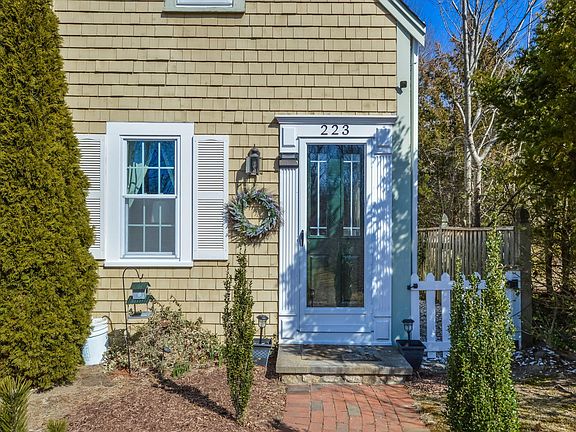 This Storybook house is a Sandwich gem. Filled with natural light and combining antique charm with clean simple details. The living room boasts wood floors and a Jotel gas fireplace for cozy warmth. The kitchen features a dining area and side door to access the back yard. The full bath and combination washer/dryer is on the main level. Upstairs are two bedrooms with wide-pine floors. Updates in the past twelve years include roof, windows, natural gas furnace, Jotel gas fireplace. The patio is an ideal spot for outdoor dining and relaxation. Location - Location - Location - with its proximity to the Historic Village shops, restaurants, library, coffee shops. Take Dewey Avenue and stroll along the marsh to Town Neck Beach and the famous Sandwich Boardwalk. Take a short drive to the Marina and Cape Cod Canal. Or cross the road to feed the fish at the Fish Hatchery. A very special property.