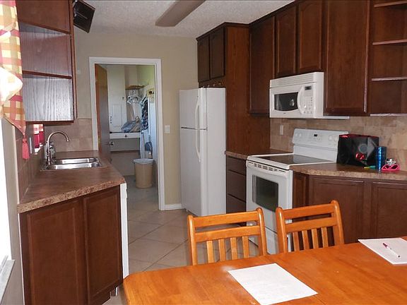 Pride in Ownership shows throughout in this home. Freshly painted, kitchen updated with new countertops, cabinets, white newer appliances and tile on the diagonal. Large Kitchen with spacious eating area with 2 windows. Newer Stainless Sink and Faucet. Large Laundry room off kitchen with shelving for storage. New exterior heavy duty door to carport with storm door. Newer carpet in Living Room and hallway. Utility Closet near kitchen. Main bath has tub and shower-updated with newer vanity. Linen closet in hallway. Master Bedroom has 1/2 bath with toilet and sink and newer vanity. 5 ceiling Fans in all rooms except for baths and laundry room. Water heater is 53 Rheem & newer. Pull-down attic on roomy Carport. Front Porch is open. Large Shed in rear for storage. Yard is 67x144 with no Homeowners Association. City water and Sewers.