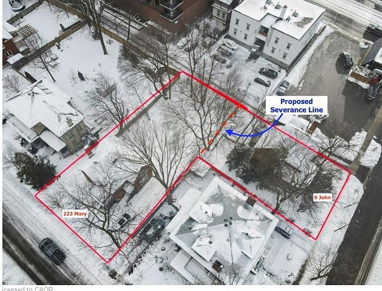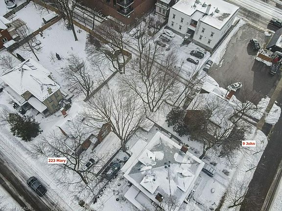Exciting Development Opportunity in Uptown Waterloo’s Sought-After Mary Ellen Neighbourhood! This prime property offers unparalleled potential in one of Waterloo’s most desirable locations. Situated on a generous lot extending from Mary Street to Dodds Lane, it features dual access—a rare find that opens up endless possibilities. Whether you envision building a luxurious single-family home with a spacious rear garage or capitalizing on the incredible development potential, the choice is yours. With the City of Waterloo now permitting up to four units per semi-detached lot, this property can potentially accommodate up to eight residential units (buyer to verify with city planning). Located just one block from King Street, this property is steps away from the vibrant heart of Uptown Waterloo. Enjoy boutique shopping, fine dining, entertainment, and more—all within walking distance. Seize this rare opportunity to create something extraordinary in an unbeatable location. Whether for personal use, investment, or development, the possibilities here are truly exceptional. Please note: 223 Mary Street and 9 John Street currently share a merged title, but the seller will apply for a technical severance, ensuring each property will have its own separate lot and title. The proposed boundary line has been outlined (see photos for reference).