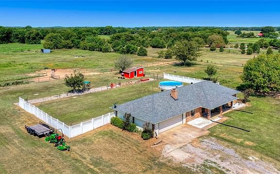Bring your horses, livestock and chickens! This newly renovated home boasts multiple fenced pastures with lots of room for your animals to roam. Updates include new roof, gutters and HVAC! New kitchen has stunning wood tile floors, shiplap and granite countertops. The kitchen looks west and is perfect for indoor and outdoor living. Master bedroom features on-suite with massive walk in shower where you can relax with dual shower heads. The newly renovated hall bathroom has an extra deep bathtub tub. Property also has separate one acre with its own water tap, septic and electricity which is perfect for a shop, second dwelling, or she-shed. Property sits outside of city limits saving you money on your taxes!