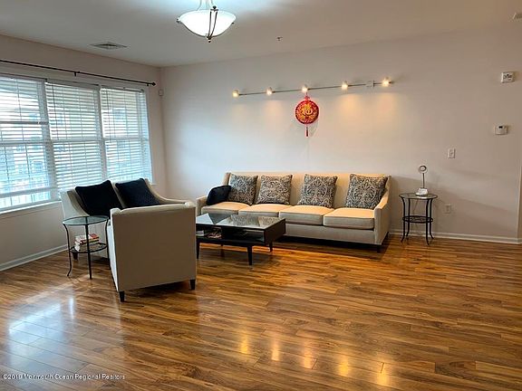 Luxury 2 bedroom 2 full bath condo located in Mill Pond. Open floor plan, kitchen with upgraded cabinets, stainless steel appliances and counter bar. Nice dining room, bright and airy living room with gas fireplace and hardwood flooring. French door to deck. Large master bedroom with a walk-in closet. Fabulous private master bathroom with double vanity & oversized shower. Full laundry room with washer and dryer. Second bedroom with full bath. Just minutes to Garden State Parkway, Route 18, Route 35 & 36. Close to shopping, Jersey Shore Outlet!