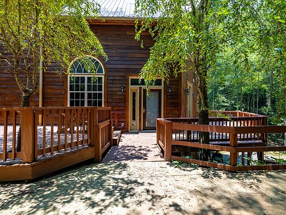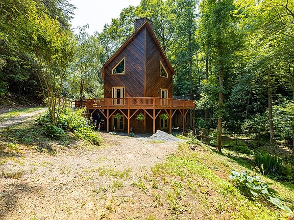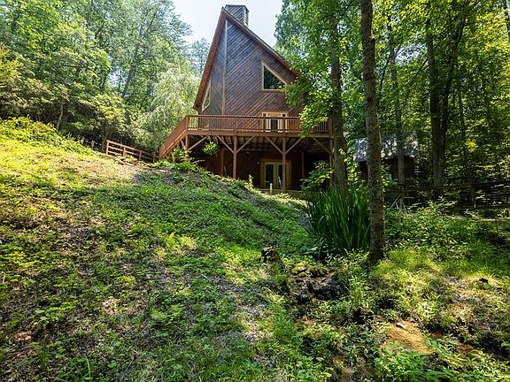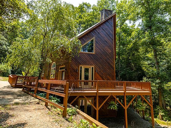 JUST UNDER 3000 sqft. The Airport Lodge located in the beautiful Iotla Valley sits nicely on over four gentle acres. The trickling stream rolling down the property with your private driveway welcomes you and your guests. The Airport Lodge was built fifteen years ago and is a mile and a half from the private macon county airport. The captain's level has a full kitchen, bathroom, bedroom, washer/dryer hookups, and an immaculate stone fireplace. Take the solid wood slab steps up to the loft to find the lookout bedroom with an oversized closet and a full jetted tub bathroom. Travel all the way down to the den to find the lower terrace with multiple walkout options, design your own kitchen, washer/dryer hookups available, and another full bath, with a few spare rooms.