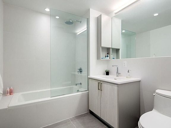 The Berkley was classically designed to reflect its industrial roots. Complimentary towers, connected by a central landscaped courtyard, The Berkley is one and half blocks from the Bedford L train, in the heart of Williamsburg, which continues to be the epicenter of the creative, artistic and entrepreneurial renaissance of New York City. Amenities: Staffed lobby lounge Rooftop sun-deck lounge with barbecue stations and showers Two story fitness center Courtyard with fire pit and yoga lawn Living Areas: Original Building Details Wide Plank Black Walnut Floors Custom Roller Shades Abundant Closet Space Bosch Washer and Dryer Private Balcony Kitchen Features: Bosch Fullsize Dishwasher Fisher & Paykel Fridge with Ice Maker Gray Slate Countertops Two Toned Cabinets Ample Countertop and Storage Space Bathroom Features: Toto Fixtures Caesarstone Countertops Miton Vanity with Storage Deep Soaking Tubs Glass Panel Shower Enclosure Advertising net rent of 1 month free on a 12 month lease Photos are of a similar unit Available 12/6