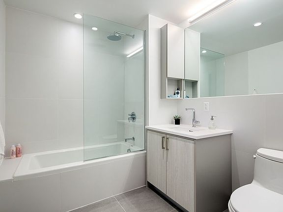 Bright and spacious 2BR/2BA with private balcony & in-unit washer/dryer. With complimentary towers, connected by a central landscaped courtyard, The Berkley is one and a half blocks from the Bedford L train, in the heart of Williamsburg, which continues to be the epicenter of the creative, artistic and entrepreneurial renaissance of New York City. Amenities: Staffed lobby lounge Rooftop sun-deck lounge with barbecue stations and showers Two story fitness center Courtyard with fire pit and yoga lawn Living Areas: Original Building Details Wide Plank Black Walnut Floors Custom Roller Shades Abundant Closet Space Bosch Washer and Dryer Kitchen Features: Bosch Fullsize Dishwasher Fisher & Paykel Fridge with Ice Maker Gray Slate Countertops Two Toned Cabinets Ample Countertop and Storage Space Bathroom Features: Toto Fixtures Caesarstone Countertops Miton Vanity with Storage Deep Soaking Tubs Glass Panel Shower Enclosure *Net rent advertised, 12 month lease. Landlord is allowing new tenants to pay the net monthly. Photos are of a previously dressed unit. Please consult the floorpan for accurate layout.