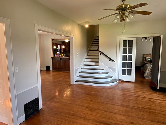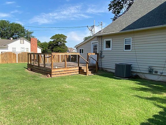 1940 Farmhouse on a large city corner lot with trees to shade the morning sun. 1 room with bathroom downstairs, Granite counter tops hard wood floors, remodeled bathroom and 2 rooms upstirs. Almost 2 full city lots 1.75 makes for enough room to enjoy the south facing deck to enjoy all day activities.
