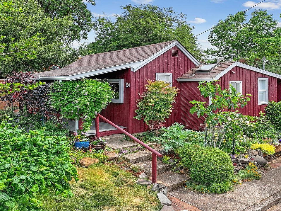 Quaint cottage living at it's best! This absolutely charming 460 sqft, 1 bed, 1 bath home lives large for it's compact size. Beautiful high, vaulted ceilings give a light & open feel to the main living room. The kitchen has plenty of storage & small eating counter. This very well maintained home is clean & bright with an emphasis on the immaculate garden & serene back yard. The detached garage has an attached secondary space. Minutes to downtown restaurants, schools & farmers market.
