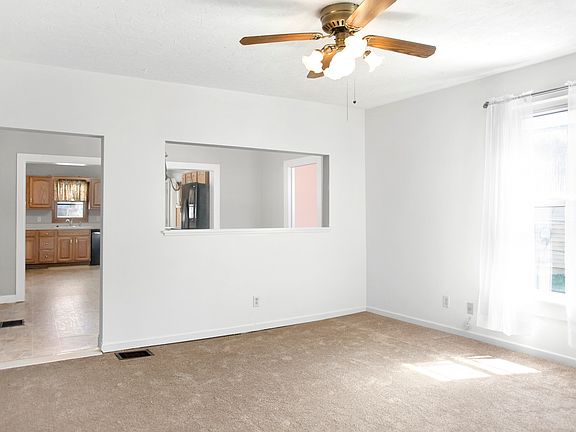 This house is larger than it looks and has several recent updates! Sit outside on your freshly painted covered porch. Metal roof installed 2019. 2023 New carpet throughout and some new LVP in laundry. This home features 3 main level bedrooms, a living room, dining room, large kitchen and family room. Appliances are 3 years old and staying. Also has a great laundry/pantry/utility space with access to the cellar. Upstairs you will find 1 bedroom, a bonus room and a large landing with closets to use as you want!! Backyard offers a large covered patio (new paint) and a two car garage. Plenty of place in the side yard for you or your four legged friends to play! This is a great find under $150k to make your own!