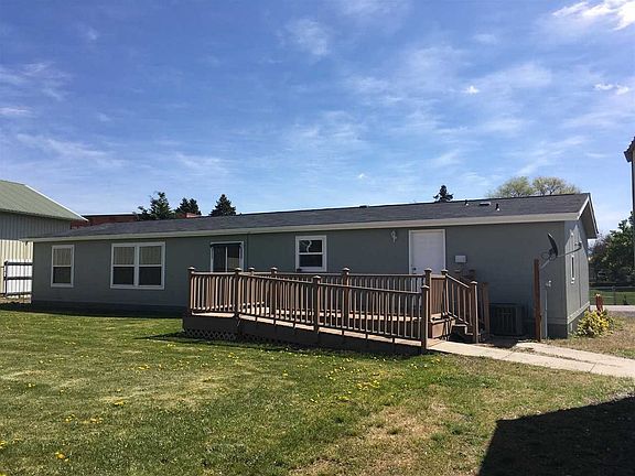 Location is key here! Surrounding single family homes greatly enhance the value of this property. View from front is open grassy school yard. Hard to find large 4 bedroom/ 2 bath ADA complaint manufacture homes on slab & blocked foundation offering convenient single level living. Notice 2006 construction, newer 24 x 24 cold shop building or garage auto sprinklers & rear fenced yard all on large fee simply city lot. Clean as they come & E-Z to show. Vacant.