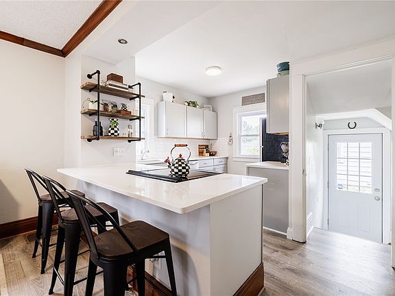 Discover the charm of this beautiful 1920’s classic foursquare, just steps away from West Irondequoit. This home perfectly balances timeless character with modern updates, creating a space where you’ll feel right at home the moment you walk in. The open kitchen and dining area is designed for both everyday living and entertaining, with shaker-style cabinets, quartz countertops, plenty of prep space, and sleek stainless steel appliances. From there, the dining room flows into a cozy living room, where evenings can be spent around the brick fireplace, framed by original wood built-ins that add warmth and history to the space.