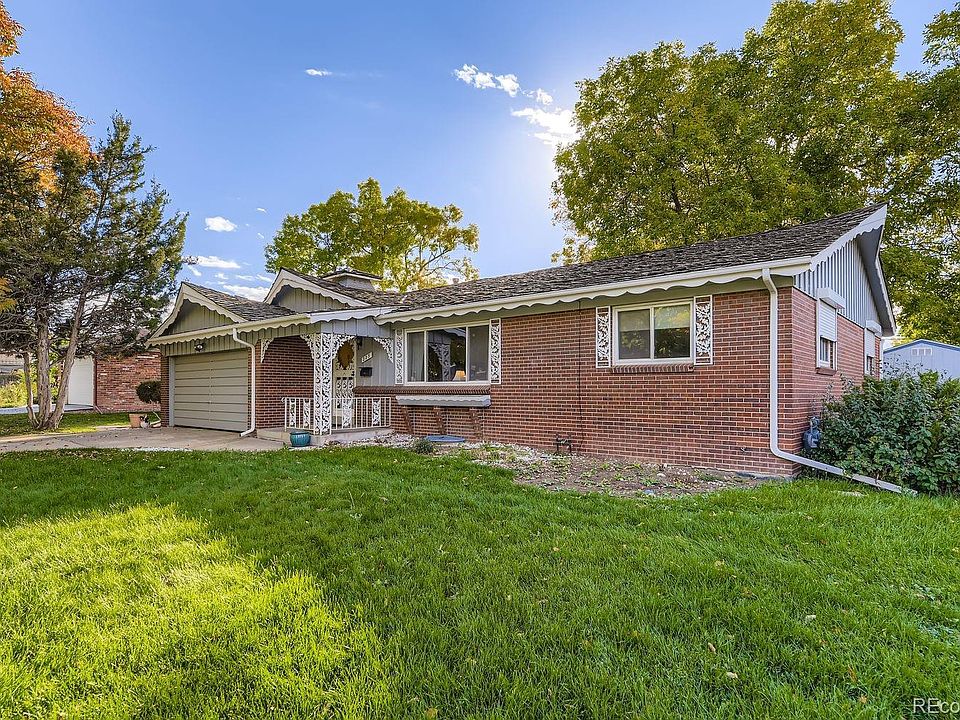 Sentrilock lockbox. Call Listing Broker if you need a code. Welcome to this charming sturdy brick ranch-style home in the highly desirable Park East neighborhood! This lovely 3-bedroom, 2-bath residence has a 2 car attached garage for your convenience. A new roof is being installed for added peace of mind. Step inside to find a warm and inviting living room perfect for relaxing or entertaining. The main level offers 2 comfortable bedrooms and a full 4-piece bath, while the finished lower level includes a non-conforming 3rd bedroom, a ¾ bath, and a massive family room—ideal for movie nights, a playroom, or hosting guests. The chef in the family will love the spacious kitchen with an abundance of cupboards, a center island, and an adjacent dining area featuring a cozy fireplace—perfect for chilly Colorado evenings. Stay comfortable year-round with central air conditioning for those hot summer days. Just off the kitchen, enjoy the enclosed sunroom, a great bonus space that leads to the generously sized backyard with mature trees offering shade and privacy, plus an oversized shed for extra storage or hobbies. The lower level also includes a spacious laundry room with utility sink, as well as a dedicated workshop—perfect for DIY projects or extra storage. Don’t miss your chance to own this well-maintained home in a prime location near parks, schools, shopping, and more. Schedule your private showing today!