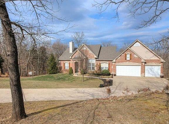 This impressive, custom built home is one of a kind w/ approx. 4 private acres. Prepare to be impressed, brick/stone elevation & situated perfectly on a 20 foot natural rock bluff overlooking Dardenne Creek. It doesn't stop there, wait until you see the natural wet weather waterfall, along w/ 32 x 14 deck, custom gazebo, patio & pathway leading to the winery opening soon. The interior is incredible w/ 5 arched openings, 9 & 12ft. ceilings t/o, floor to ceiling windows in the GR, see thru gas f/p, french doors into office/bdrm w/ Jack & Jill bath. The kitchen is a chef's delight w/ wood floors, staggered maple cabinets w/ some glass fronts, SS appliances, Granite & beautiful back splash w/ an open staircase to the w/o LL w/ 9 ft. pour, media room & equip. to stay, wet bar, family/rec/bedroom/full bath/fireplace & wine tasting rm. The master suite is a private retreat, w/o to the deck & enjoy the fire in the bdrm or soaking in the tub, Custom closet, his/her vanities, shower w/ views.