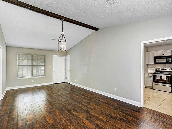 Don't miss this renovated 3 bedroom full brick home! New floors, fixtures, and fresh paint throughout. Spacious family room with laminate wood floors and vaulted ceiling. Eat-in kitchen offers new granite countertops. Flex space off living room is perfect for a dining room, study or bonus. Large patio, fenced in yard, detached building and located at the end of a dead end street.