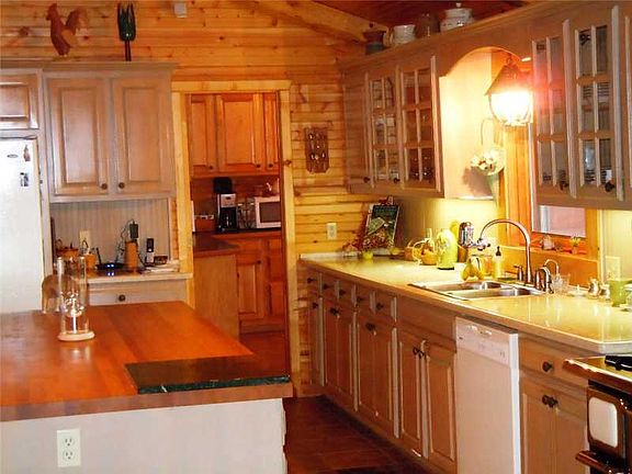 Large Lakefront log Home with a Spectacular view of Sparkling Beaver Lake. Three Bedrooms and 3 Bathrooms. Open Floor plan with large living room with G-Log FP, Dining and Gourmet kitchen. Attention to detail on the interior with extra large Master BR with Setting room. Cathedral ceilings Huge Family room and Craft room area on the lower level awaits your ideas. Covered Front and Back Porches with large back deck for your entertaining. 2 car Detached Garage, also log construction, and fenced side yard.