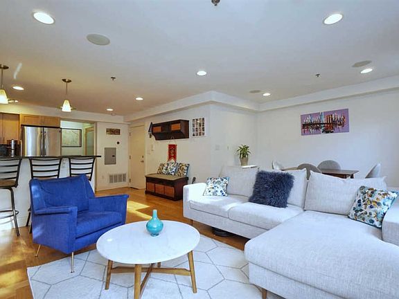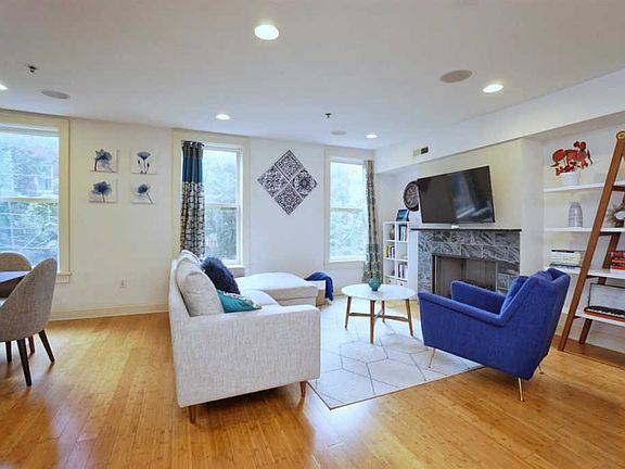 Perfectly situated on downtown tree-lined Park Ave., this is a bright 2 bedroom, 2 bath duplex condo with private terrace in a 3 window wide brick building. Spacious living room and dining room with gas fireplace. Open kitchen with stainless appliances, granite counters & breakfast bar, pendant lighting, and glass tile backsplash. Large main bedroom with en-suite bath & custom walk-in closet. Generous second bedroom; both bedrooms have terrace access. Bamboo hardwood floors throughout, glass doors, central air & heat, surround sound, washer and dryer. Ideal downtown Hoboken location, moments to NYC PATH , bus, schools, rental parking, restaurants, and parks. Rental parking available 1 block away.