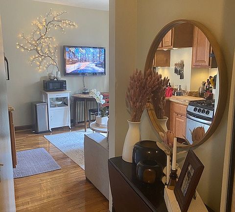 Very bright apartmentGreat floor planGarbage disposalAmazing viewsLots of windowsBeautiful hardwood floorsFull kitchen