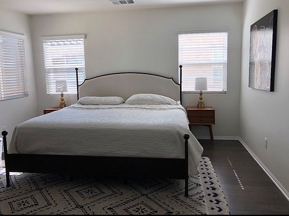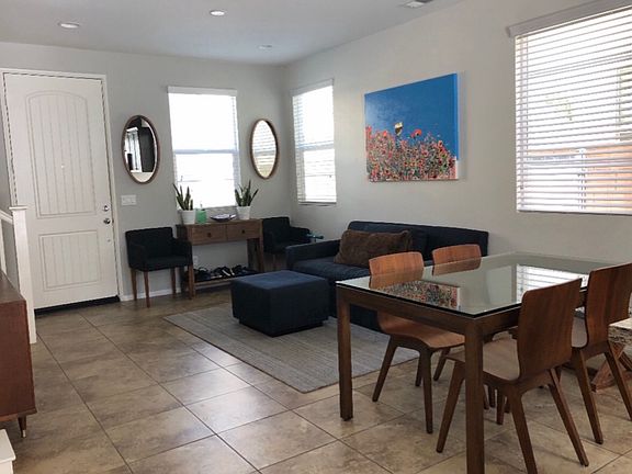 This beautiful and relatively new Mediterranean style home is in the coveted gated community of Spanish Walk right in the heart of Palm Desert. This home is a perfect family home or will make an excellent income property. It is one of the few homes that has 4 bedrooms with 2 being master suites! One master suite is downstairs along with a half bath and an open concept kitchen and living area. The kitchen has upgraded, stainless steal appliances and a gas range. Upstairs is a large open loft area with 3 more bedrooms, one being a very large master suite. There is another full bathroom upstairs, the laundry room with new washer and dryer and lots of built ins for storage. The backyard is definitely one of the nicest in the development with mature foliage, rose bushes, citrus trees, a nice lawn area and a beautiful concrete patio. There is even an automatic sprinkler system! There is a 2-car garage with a tankless water heater and lots of storage.