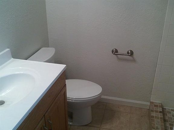 It features an open floor plan, a fireplace, and plenty of living space. The modern kitchen has updated appliances, an island, and ample cabinet space. The inviting living room has a cozy fireplace. The master bathroom includes a garden tub and dual sinks. The backyard features a patio. All utilities are included except for the trash, cable and lawn maintenance
