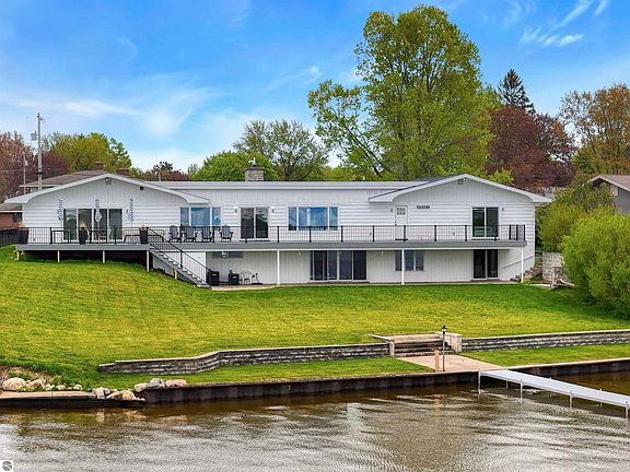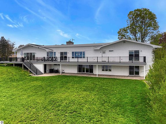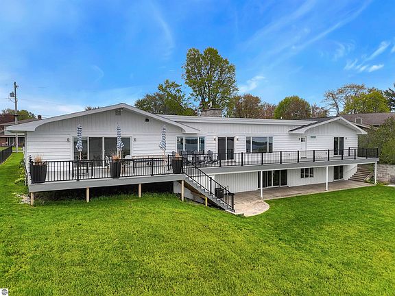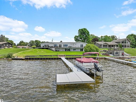 Simply stunning with a huge WOW factor begin to describe this waterfront home on beautiful Lake Cadillac! This home has been completely and tastefully renovated inside and out, and is ready for your family and friends. Designed for gathering and entertaining, the main floor boasts a large open kitchen and living room concept. The kitchen has a sprawling island, two separate sink areas, exquisite backsplash tile work, and then the showcase AGA 83" dual fuel range, which you must research to be amazed! Warm hardwood plank flooring runs throughout this area, as well as the dining and bar area. The primary bedroom offers relaxing lake views, and more extensive tile work in the bathroom. There are two more bedrooms on the main floor, with one of them being its own private suite! The WOW factor continues in the lower walkout level. There is a large rec room space with a 12' glass slider, a 4th bedroom offering lake views, and a spacious guest bathroom. Then there is the well thought out designated kids or guest area. This contains another rec room, two bedrooms with built in beds for up to 8, and a bathroom that features two separate showers, two lavatories, and a gorgeous three bowl vanity! Outside is where the lakefront fun begins. The 115' of water frontage provides a gradual sandy bottom and breath taking sunsets, and an added bonus of almost 4000 acres of water to explore between the two lakes. There are three large glass doors leading to the 95' of brand new deck, along with multiple picture windows making the inside feel like you are outside! Be sure to watch the video walkthrough, and then this is a must see to take it all in. There were no dollars spared in the renovation, not a room left untouched, and not a detail was missed. Come see if this could be your forever paradise! With a full price offer, this home could come completely turn key with all the furnishings, dock, boat, and hoist!