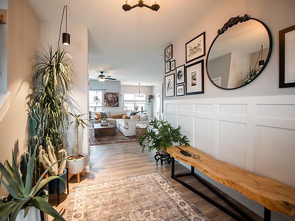 The Temptation Extended by Harmony Builders is a 2- story home consisting of 4 bedrooms, 2.5 baths and is less than 1 year old in Fox Run. This one has ALL the upgrades including a large inviting foyer with wainscoting, custom black kitchen cabinets, quartz countertops, upgraded lighting, upgraded plumbing fixtures, LVP throughout the home (no carpet), custom blinds, tiled showers, & much more. Cozy up in the large great room with lots of natural lighting and a custom gas fireplace with custom built-ins on both sides. Primary suite is complete with tray ceilings, a walk in closet and tiled shower and a double vanity.