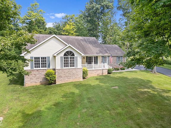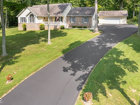 Impeccable 3-Bedroom, 2-Bath Home of Serene Country Living. Nestled on a peaceful 2-acre lot, this custom-built luxury home offers the perfect blend of country living and modern convenience. Located just a short drive from both Bloomington and Bedford, you'll enjoy easy access to all the amenities while retreating to your own private sanctuary. As you approach the home, you're greeted by a welcoming covered front porch-an ideal spot for savoring your morning coffee or unwinding in the evening as you take in the tranquil surroundings. Step inside to discover a spacious great room, featuring a cozy gas fireplace and vaulted ceilings, creating an inviting space to relax and entertain. Just off the great room, you will find the spacious owner's suite with walk-in closet, garden tub, and separate shower. The large kitchen, designed with both functionality and style in mind, flows seamlessly into the formal dining room, offering plenty of space for family gatherings and special occasions. This home's thoughtful design extends outdoors, where you'll find a 2-car attached garage, perfect for daily convenience, and an additional oversized 2-car detached garage featuring pull through garage doors and load-bearing attic, providing ample storage and workspace. Attached, a second covered seating area, fit with two paddle ceiling fans, awaits your arrival. Surrounded by beautiful shagbark hickory and white oak trees, this property is a nature lover's dream, with frequent visits from deer and other native wildlife. Don't miss the opportunity to make this dream home your reality!