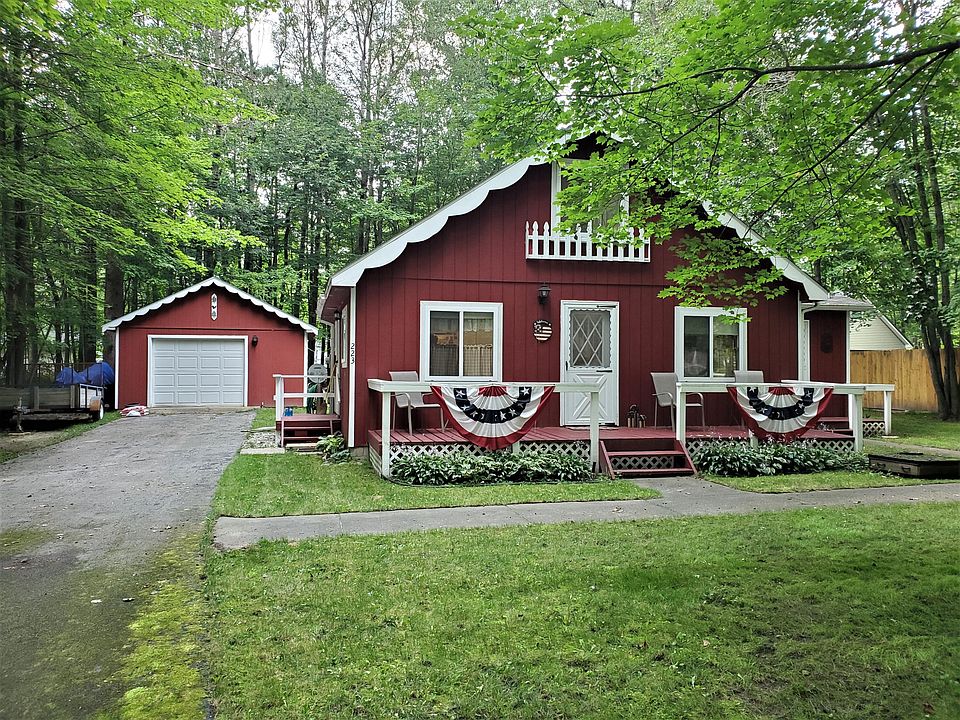 Affordable up north getaway situated in Houghton Lake Forest Estates. Home features 3 bedrooms: Main floor master bedroom with private 3/4 bath, 2nd main floor bedroom and 3rd upstairs bedroom. Open living room, kitchen and dining area offers plenty of room for the family to gather. Large yard provides lots of room for children and pets to play. Yard tools and toys can be stored in the detached 18 x 22 garage. Priced to sell at only $129,900! Schedule your tour today!!